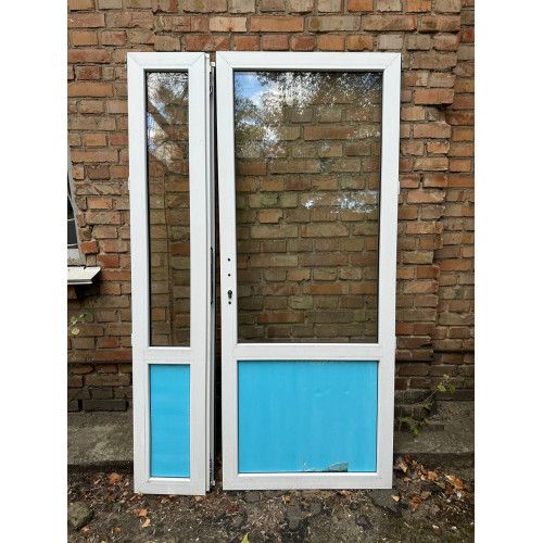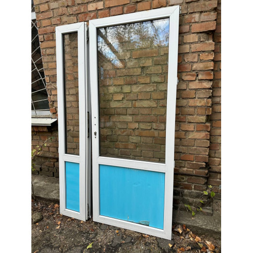 *Ширина - 800 мм *Висота - 2050 ммЯкщо обрізати фрамугу (1410) Товщина профілю - 60 мм Виробник - Windoff´s Склопакет - однокамерний Колір вироба - білий. Стан - як нові