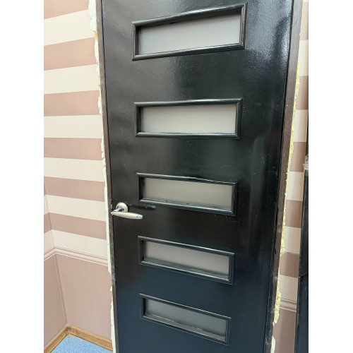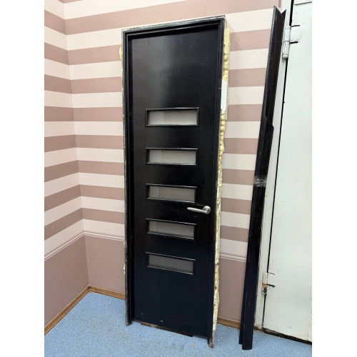 Характеристики: Каркас полотна - дерево Покриття - по фарбовані Відкривання - праве Ширина - 206 мм Висота - 650 мм Матеріал дверної коробки - дерево Двері ширина - 200 мм Двері висота - 600 мм Замок - без замка Колір - чорний Додатково - з маленькими горизонтальними вікошками 5шт. Стан - Уживаний товар, з одніє сторони немає накладки на ручки
