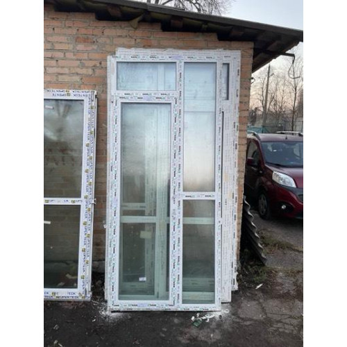 ДВЕРІ МЕТАЛОПЛАСТИКОВІ 1160х2600мм (2220мм) WDS НА ДВІ СТУЛКИ З ВЕРХНЬОЮ ФРАМУГОЮ 1-к. ЛІВА (Б/У З НОВОБУДОВИ)