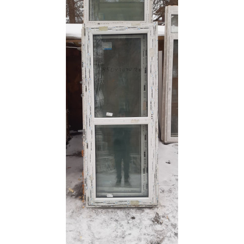 Вид конструкції - двері балконні Тип відкривання - ліві *Ширина - 850 мм *Висота - 2090 мм Товщина профілю - 60 мм Виробник - VIKNALAND Склопакет - двокамерний Колір вироба - біло-коричневийСтан - вживаний з новобудови