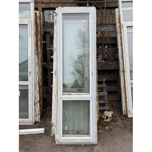 Вид конструкції - двері балконні Тип відкривання - ліві *Ширина - 720 мм *Висота - 2420 мм Товщина профілю - 60 мм Виробник - Rehau Склопакет - однокамерний Колір вироба - білий. Стан - Уживаний товар