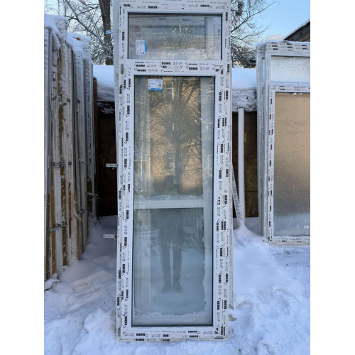 ДВЕРІ МЕТАЛОПЛАСТИКОВІ Rehau 840х2550 (2120) мм З ФЕРХНЬЮ ФРАМУГОЮ 1к ЛІВІ (Б/У З НОВОБУДОВИ)