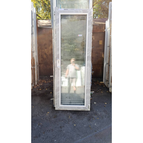 Вид конструкції - двері балконні Тип відкривання - праві *Ширина - 760 мм *Висота - 2130 мм Товщина профілю - 60 мм Виробник - SALAMANDER Склопакет - двокамерний Колір вироба - білий.Стан - Уживаний товар
