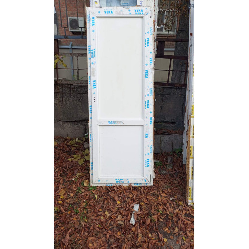 ДВЕРІ МЕТАЛОПЛАСТИКОВІ ВЕРХ ТА НИЗ В СЕНДВІЧ ПАНЕЛЯХ VEKA 760х2070мм 1к ПРАВІ (Б/У З НОВОБУДОВИ)