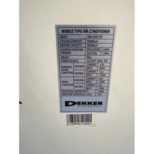 НАПОЛЬНИЙ КОНДИЦІОНЕР DEKKER DMH 9000 R/E