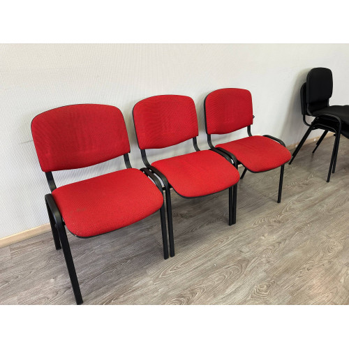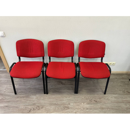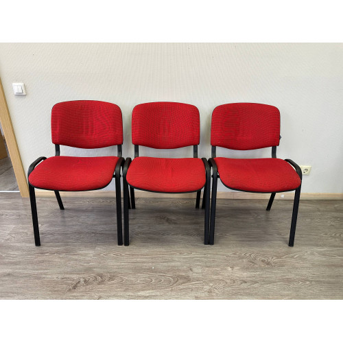 Стілець, Стиль Iso - це сучасний практичний дизайн у поєднанні з класичними формами офісних меблів. Стілець має ергономічні спинки і сидіння. Рама стільця – металева, забарвлена у червоний колір.