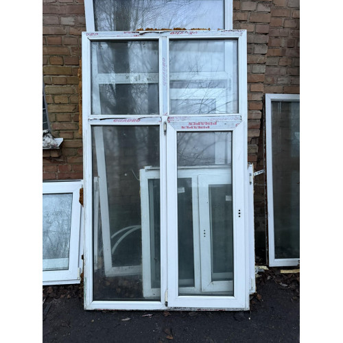 ВІКНО МЕТАЛОПЛАСТИКОВЕ 1210×2050 мм (1440) AUADRO НА ДВІ СТУЛКИ (ОДНА СТУЛКА ВІДЧИНЯЄТЬСЯ) З ВЕРХНЬОЮ ФРАМУГОЮ, 1-к. ЛІВА (Б/У)