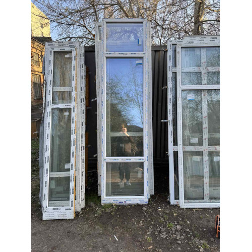 Характеристики: Вид конструкції - вікно на три стулки Тип конструкції - глухе *Ширина - 740 мм *Висота - 3000 мм Якщо обрізати фрамуги - 2400 мм та 1750 мм Товщина профілю - 60 мм Виробник - Rehau Склопакет - однокамерний Колір вироба - Білий. Стан - Уживаний товар