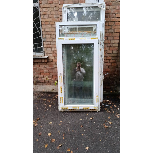 ВІКНО МЕТАЛОПЛАСТИКОВЕ 860×1780 мм SCHON НА ОДНУ СТУЛКУ (СТУЛКА ВІДЧИНЯЄТЬСЯ) З ВЕРХНЬОЮ ФРАМУГОЮ, 2-к. ПРАВА (Б/У)